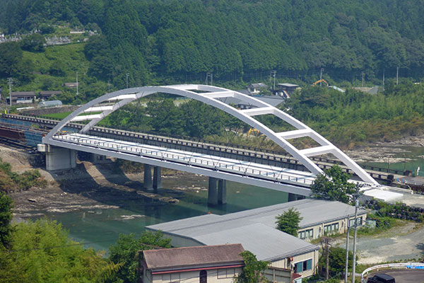 上路式アーチ、下路式アーチ、ニールセンローゼなど様々な形式があり、曲線部材により美観にも優れています。
