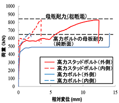 引張試験より、所定の引張強さを確保しつつ、スタッド溶接部で破断せずにボルトねじ部で破断することを確認しています。