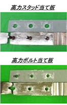 疲労試験より、高力スタッドボルトで当て板補強したスタッド溶接部の疲労耐久性を検証しています。
