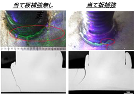 曲げ試験より、ハンマー打撃で15°まで曲げても溶接部に割れ等の欠陥が発生しません。