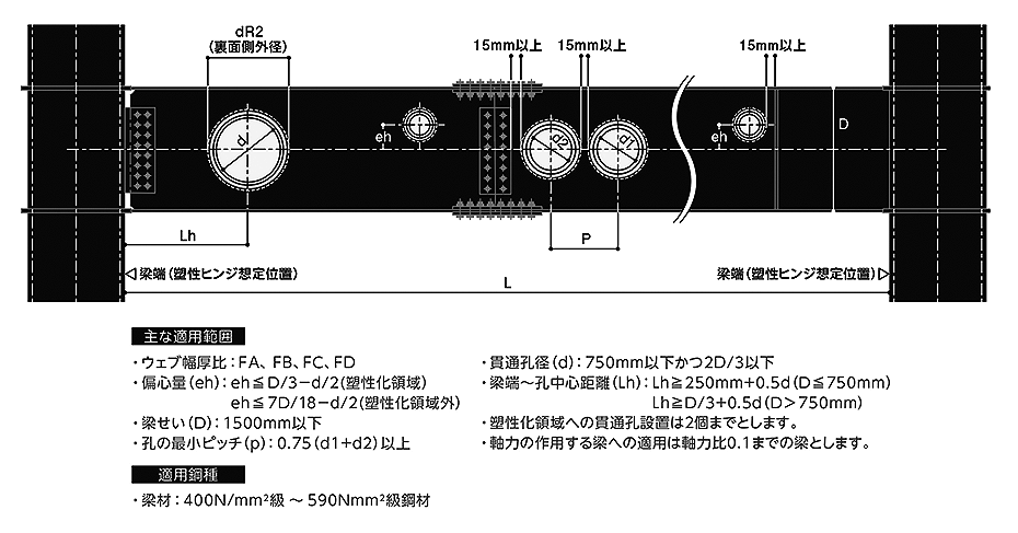 • 鉄骨梁に設ける貫通孔を補強する工法です。