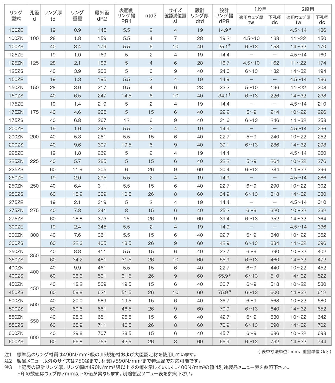 • 特注リングで材質を590N/mm2級鋼材まで拡大できます。